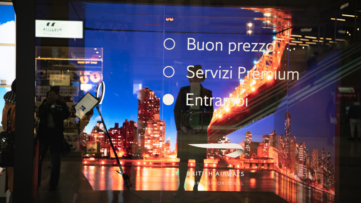 British Airways asked us to develop a brand experience to communicate long-haul routes from Milan to the United States and bring the British Airways experience to the city of Milan.